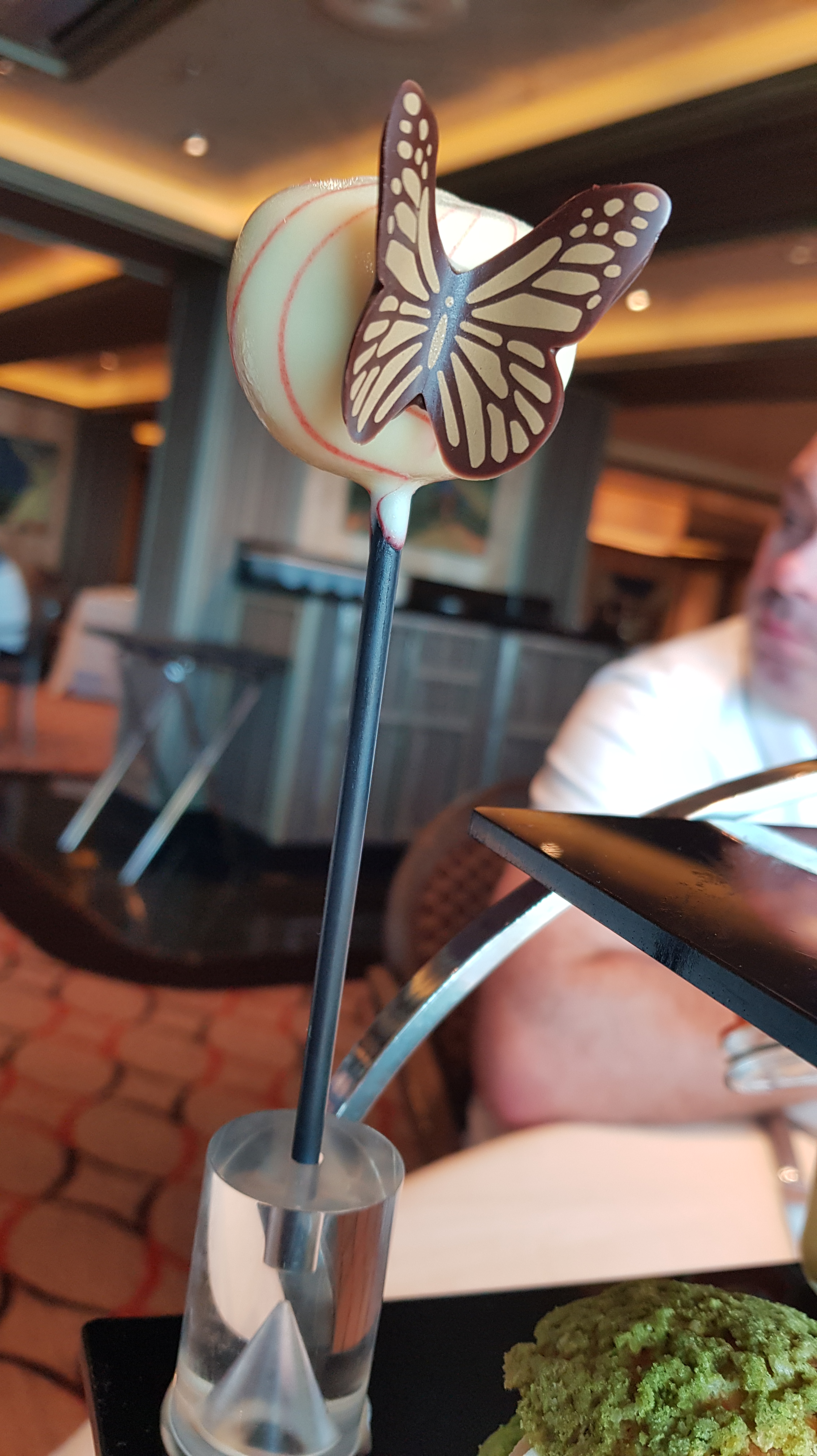 Today we actually skipped lunch – although this was because I had booked the Eric Lanlard Afternoon Tea for us all in the Epicurian specialty restaurant. This is only served on sea days and there is only one sitting at 3:30pm. The cost is £15pp and it was well worth it as an indulgent treat. We each enjoyed a selection of 3 different types of savoury bites followed by 4 sweet options and 2 scones each. This was accompanied by a choice of a range of Teapigs teas. I went for ‘Chocolate Flake’ and ‘Up Beet’. Both were very flavoursome and enjoyable but the chocolate flake was my favourite and I’ll be looking out for it when I go shopping at home. All of the food was delicious but if I absolutely had to choose a favourite, the savoury would be the Pancetta & Porcini Éclair which was rich yet light, and the sweet would be the West Indies Dark Chocolate Tart because, y’know, chocolate!