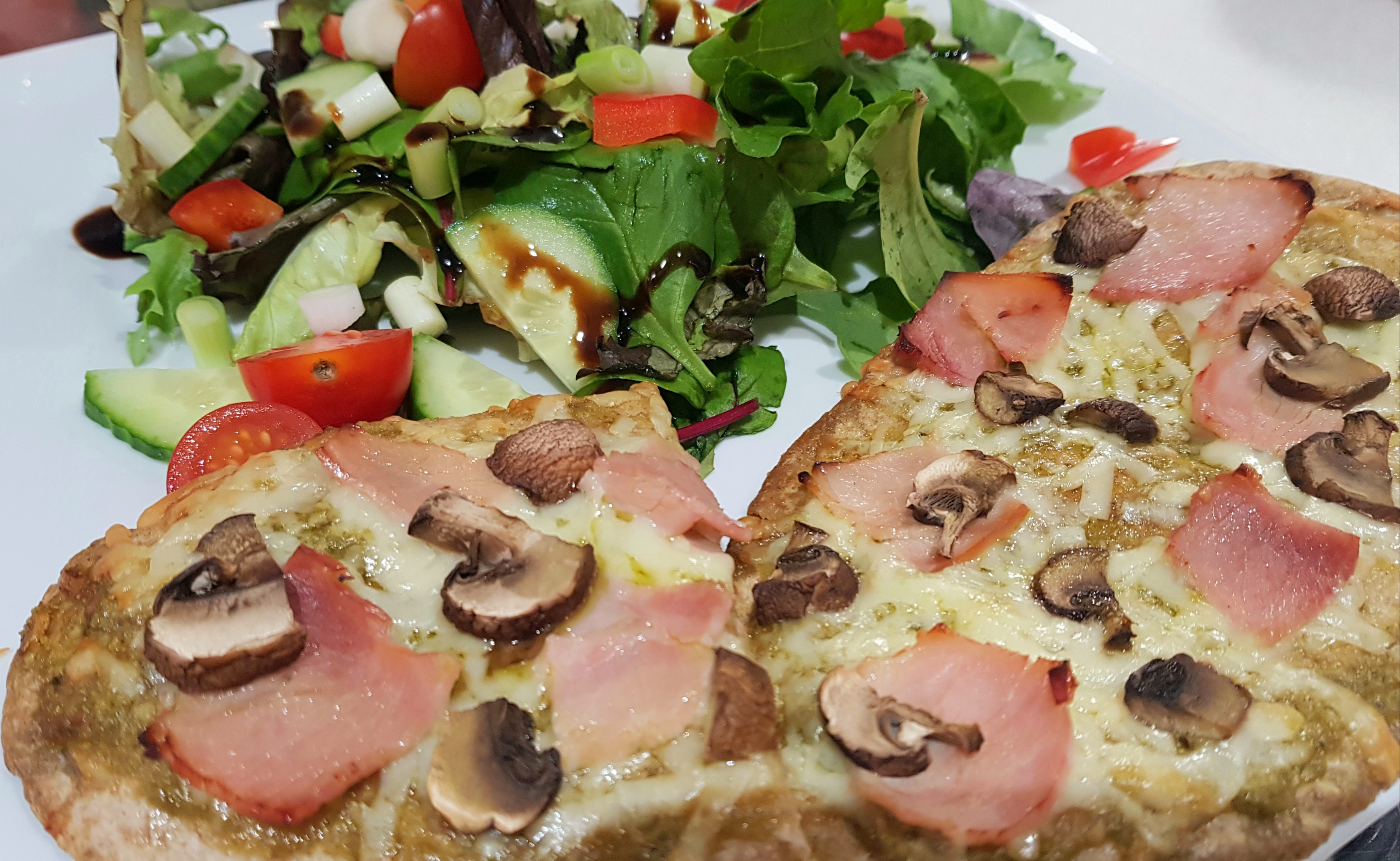 I made this by accident after planning on making pitta pizzas but finding myself with no tomato puree. The pitta pizzas were an emergency fall back as I’d forgotten to take the fish I was supposed to be cooking out of the freezer (insert face-palm emoji here) so I had to think on my feet. I’d got a half-used jar of pesto in the fridge – obvs – so I decided to substitute that for the tomato puree. It was a great move and these will now be a regular feature on my weekly menu plans.