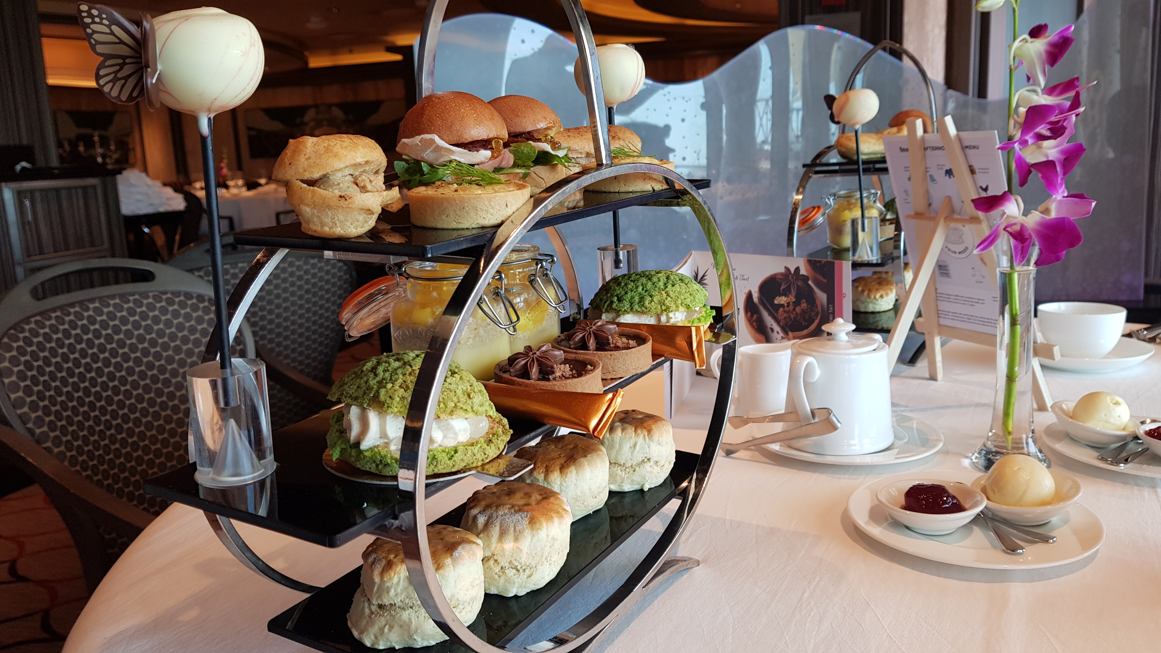 Today we actually skipped lunch – although this was because I had booked the Eric Lanlard Afternoon Tea for us all in the Epicurian specialty restaurant. This is only served on sea days and there is only one sitting at 3:30pm. The cost is £15pp and it was well worth it as an indulgent treat. We each enjoyed a selection of 3 different types of savoury bites followed by 4 sweet options and 2 scones each. This was accompanied by a choice of a range of Teapigs teas. I went for ‘Chocolate Flake’ and ‘Up Beet’. Both were very flavoursome and enjoyable but the chocolate flake was my favourite and I’ll be looking out for it when I go shopping at home. All of the food was delicious but if I absolutely had to choose a favourite, the savoury would be the Pancetta & Porcini Éclair which was rich yet light, and the sweet would be the West Indies Dark Chocolate Tart because, y’know, chocolate!